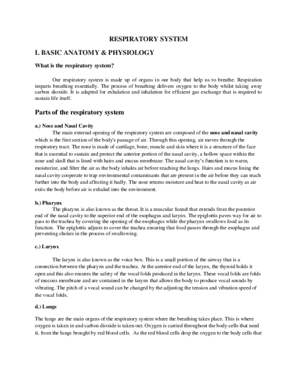 Doc Respiratory System I Rainier Tom Academia Edu